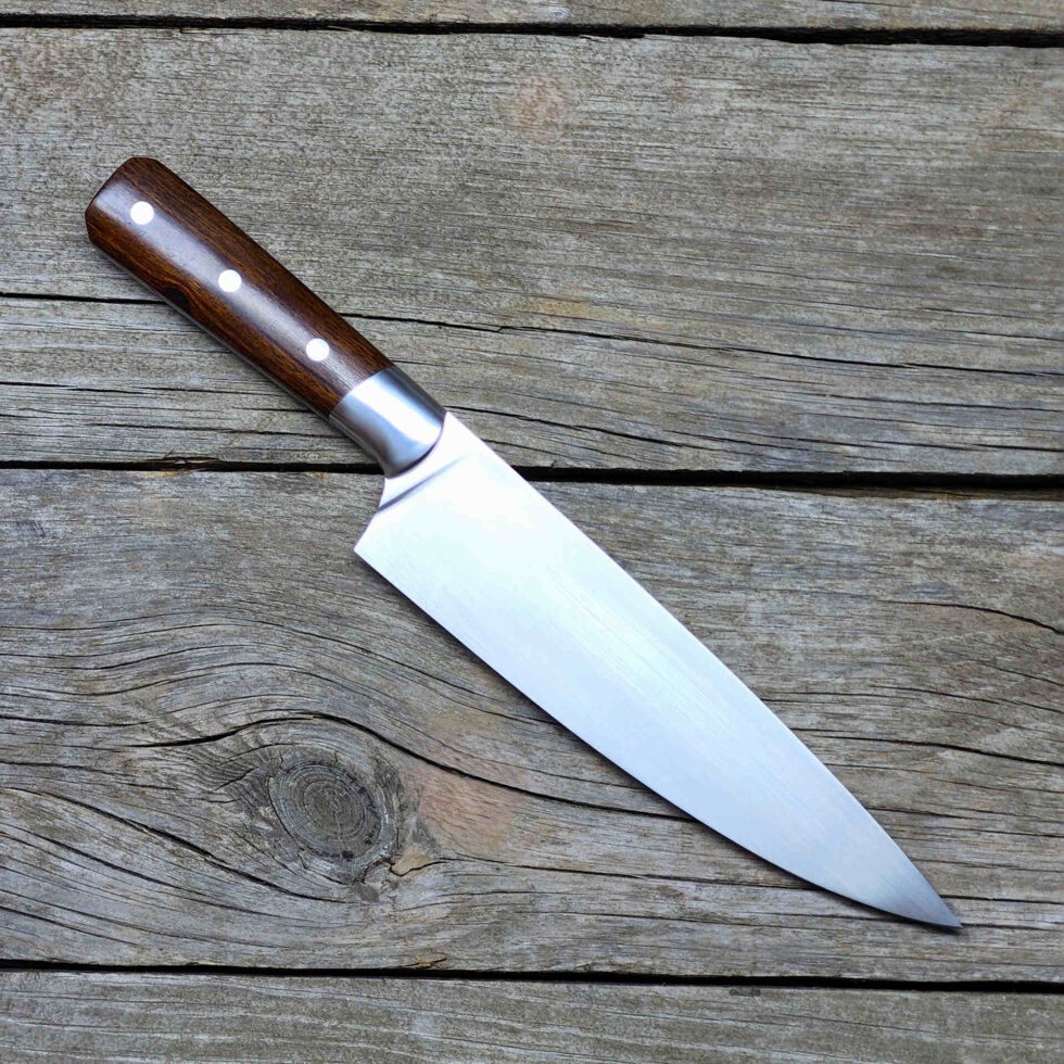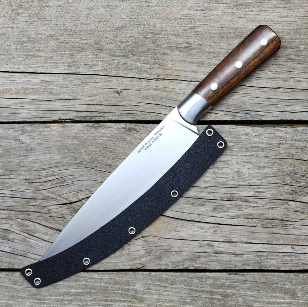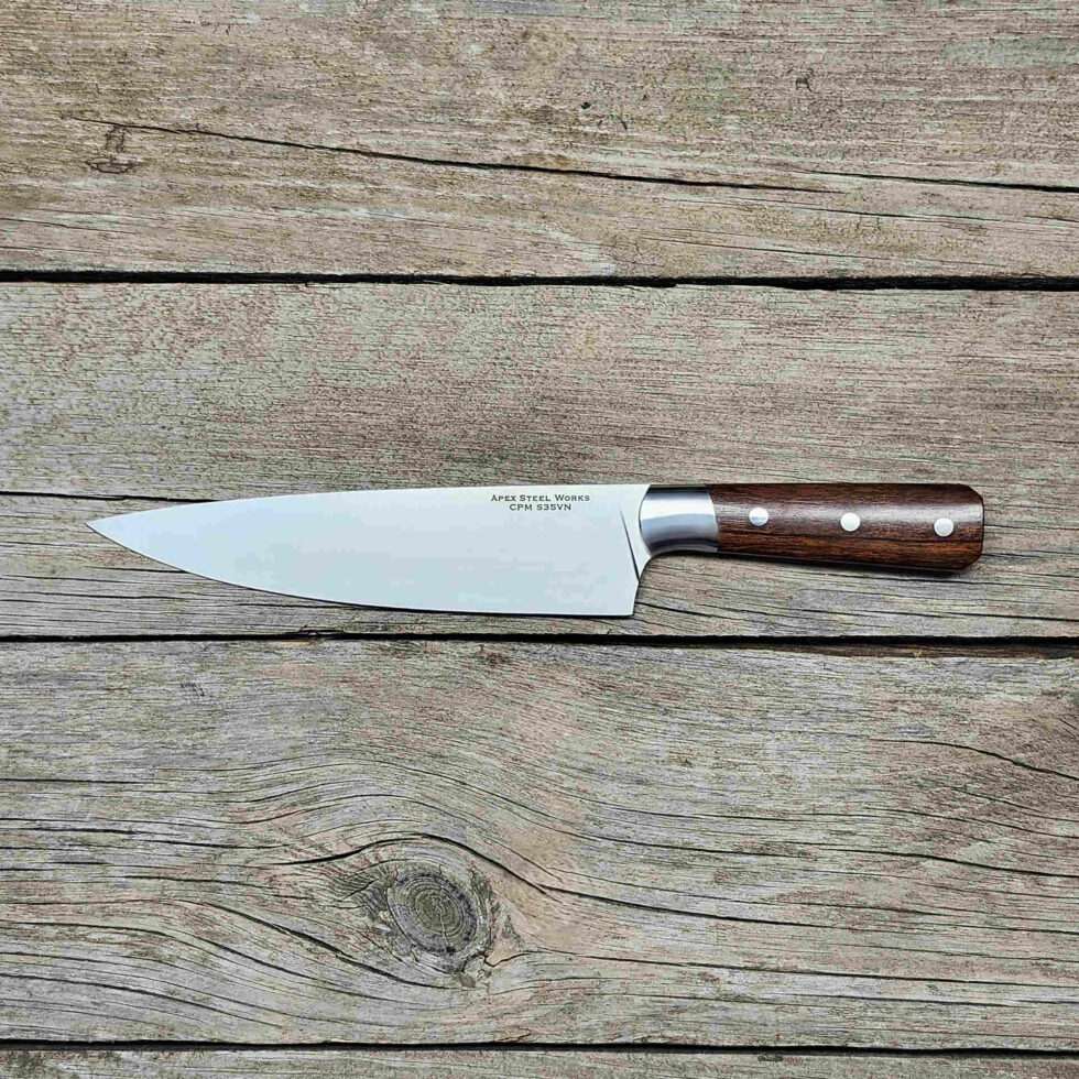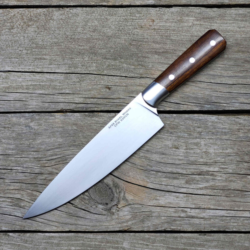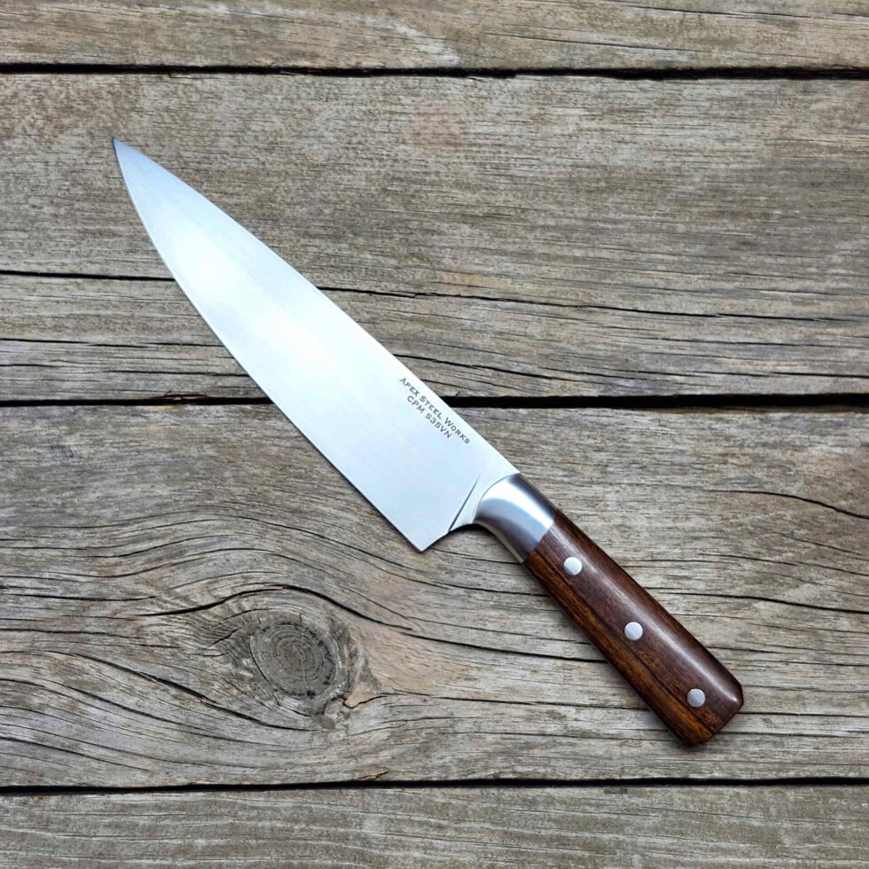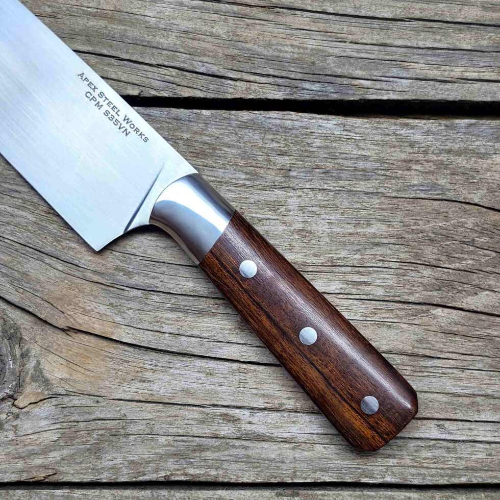 Apex Steel Works S35VN Chef’s Knife – 8 inch stainless steel blade, made by hand in the USA – Professional Chef Kitchen Cutlery – DESERT IRONWOOD 001